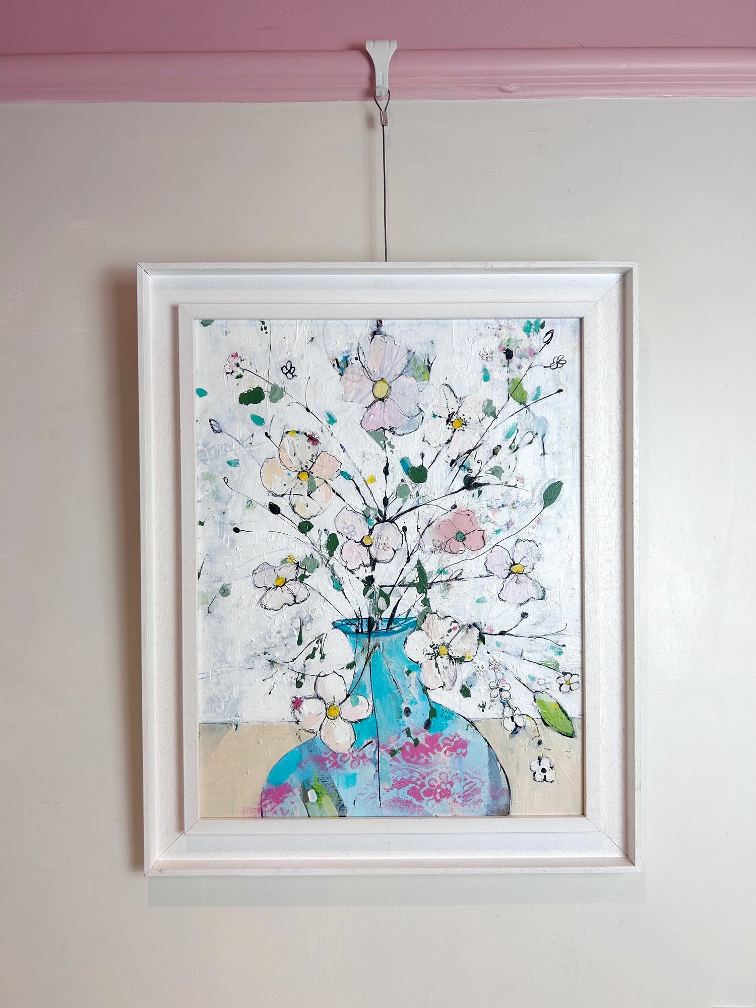 Created in acrylic and mixed media artwork is imbued with a harmonious blend of gentle and vibrant colours that evoke a spectrum of emotions, from peace and serenity to joy.